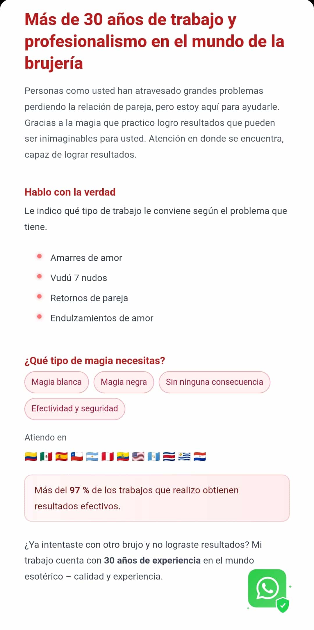 Es un excelente vidente en los trabajos de amor. Si usted está por trabajar con el va a tener resultados que serán efectivos.